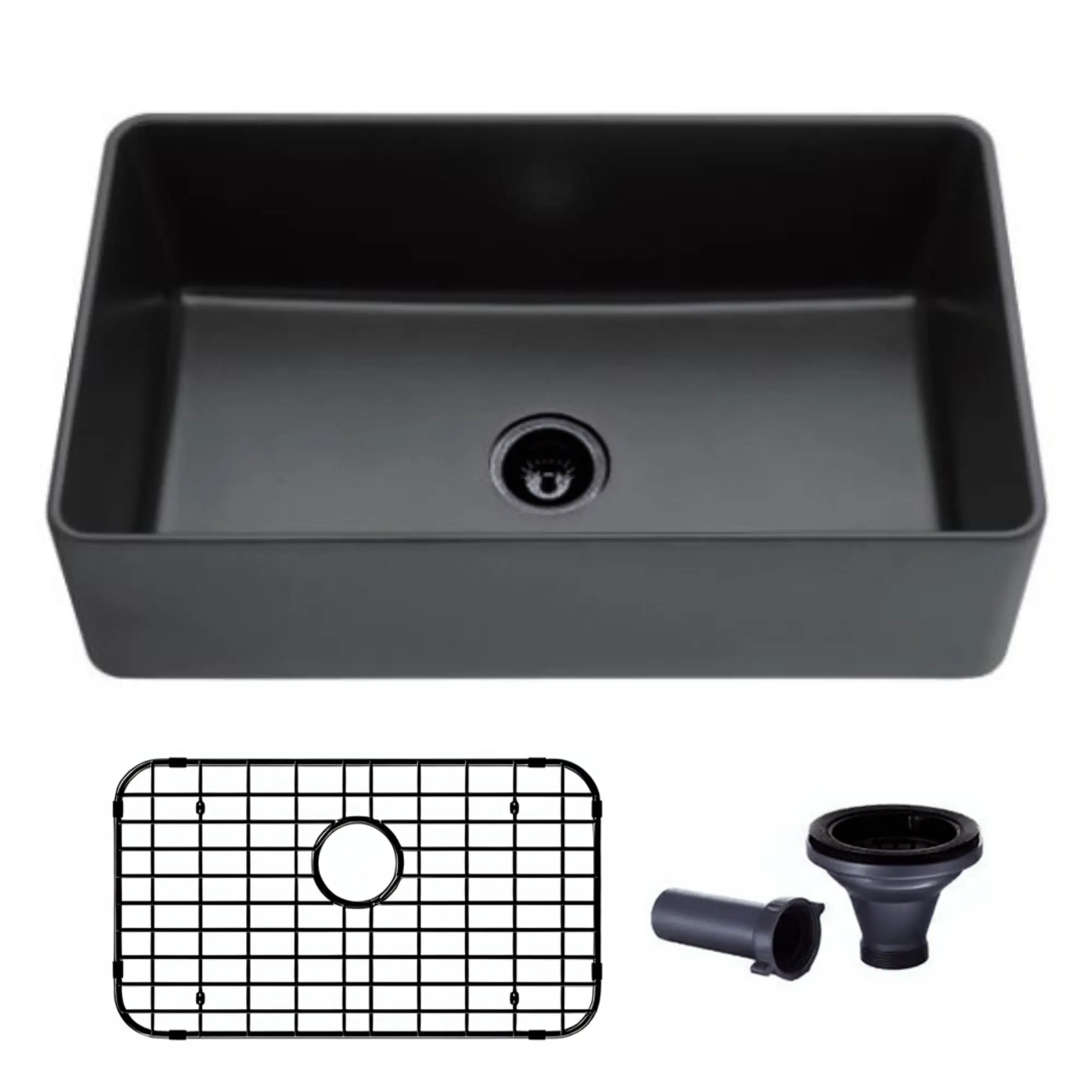33x19 Apron Farmhouse Single Kitchen Sink in Black Granite Composite with Grids