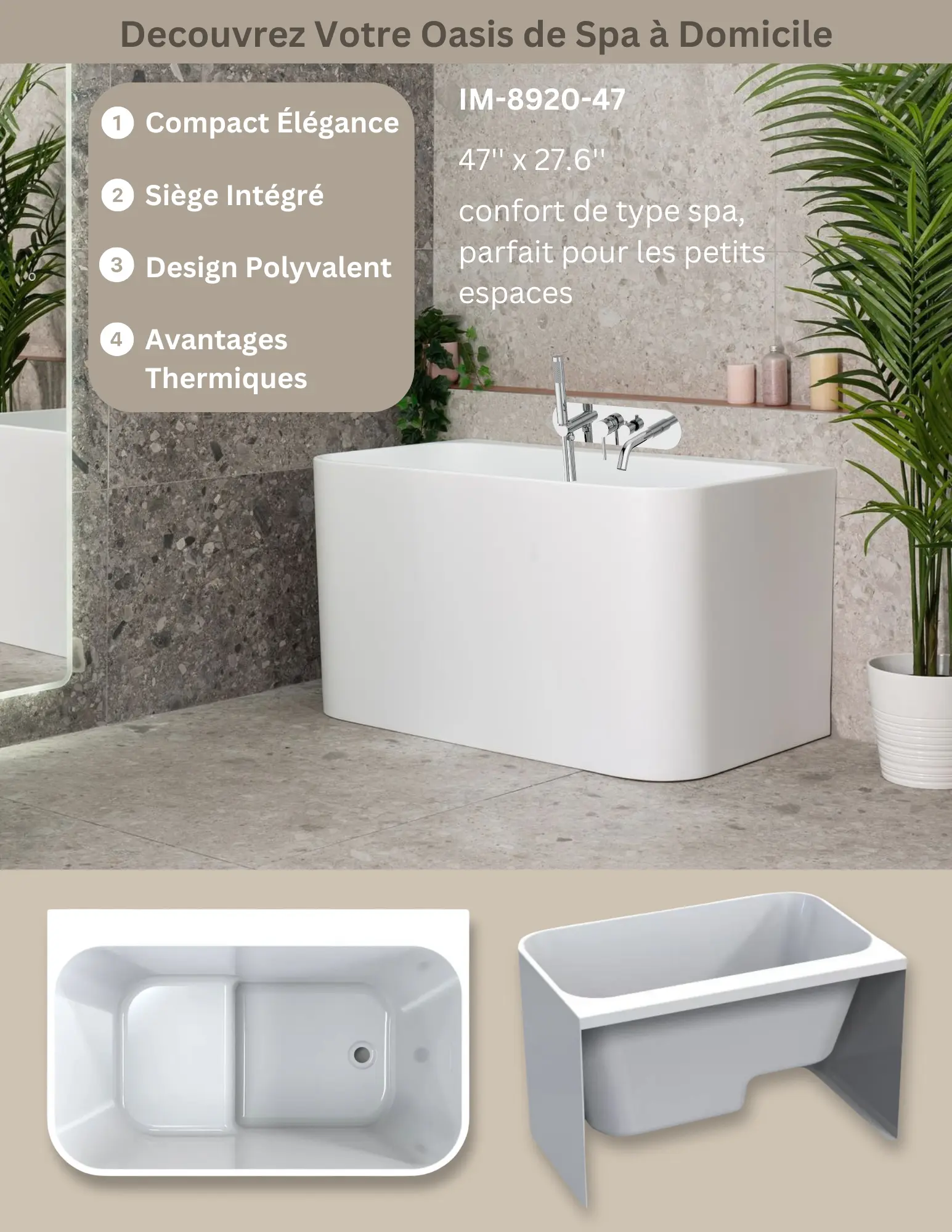 47 inch Compact Bathtub with Seat