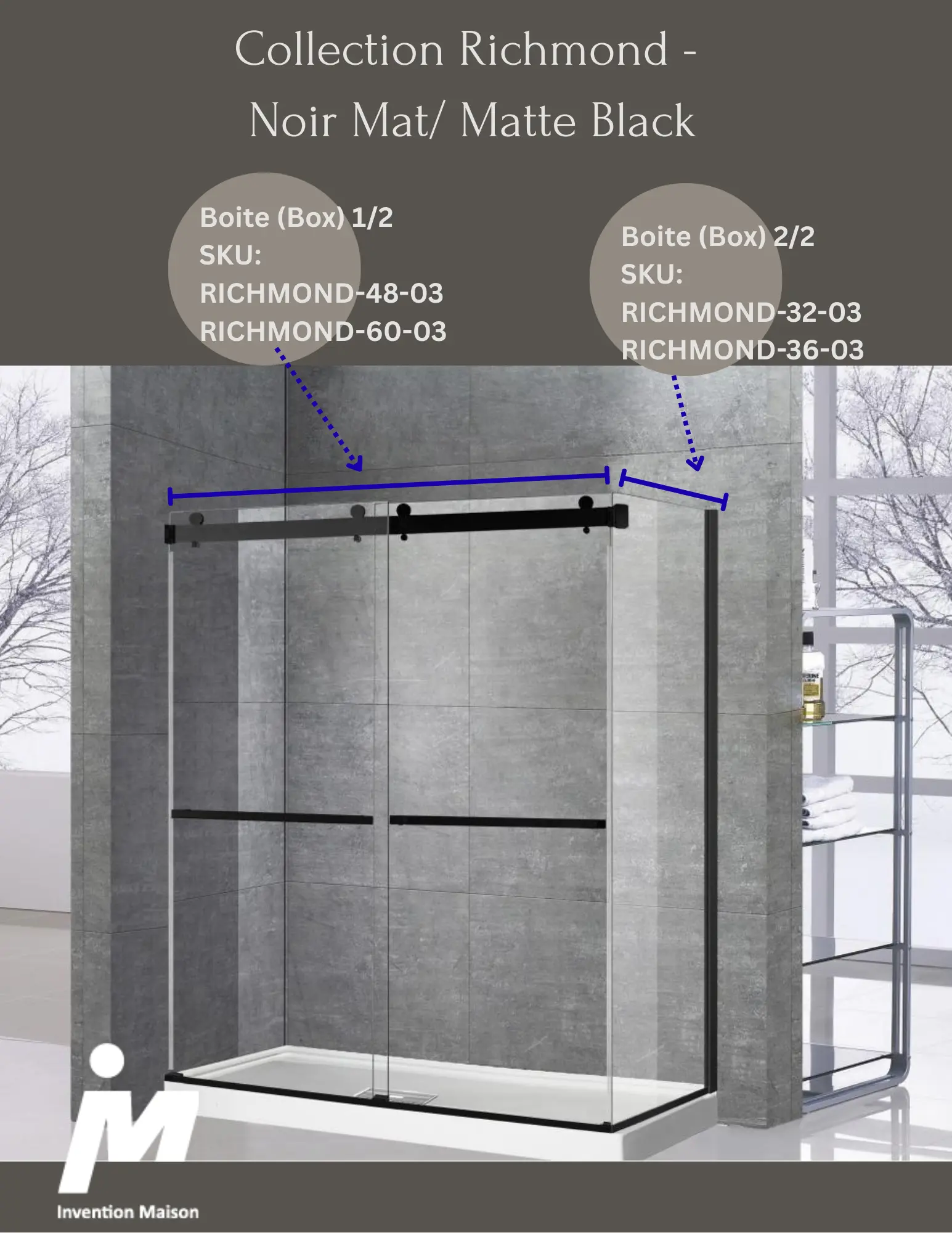 48x36 Richmond Shower Door with soft closing - Corner