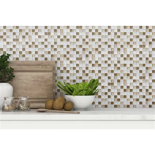 Mono Serra Mosaic Glass Mosaics Brown White Stone Glossy 12" x 12"
