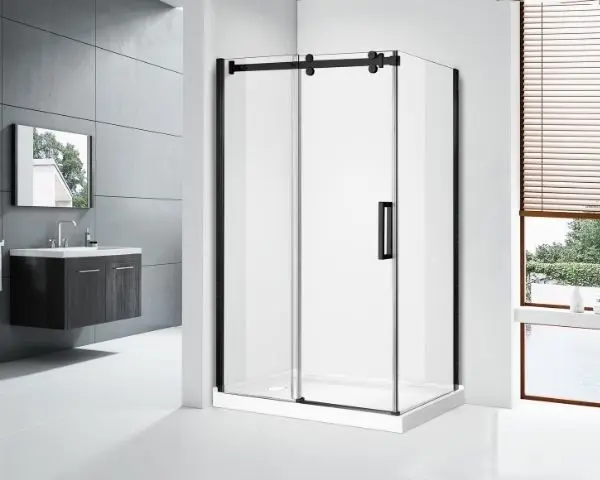Royal Matte Black Sliding Shower Door with Side Panel